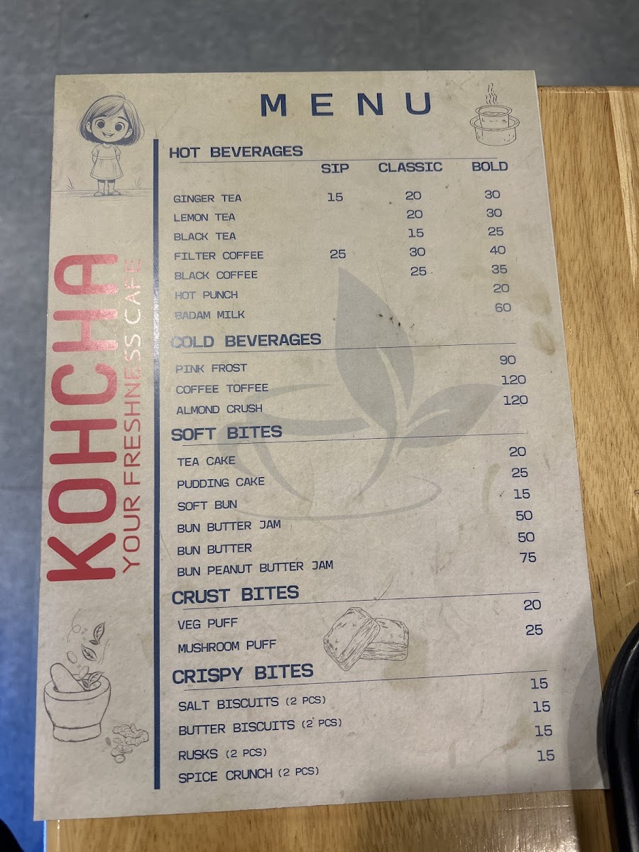 Welcome to Kohcha Your Freshness Cafe, a charming stop nestled on Ooty Rd, close to the Rose Garden School in Mettupalayam, Tamil Nadu. This delightful café offers a menu that emphasizes freshness and flavor, making it an ideal retreat for travelers and locals alike.